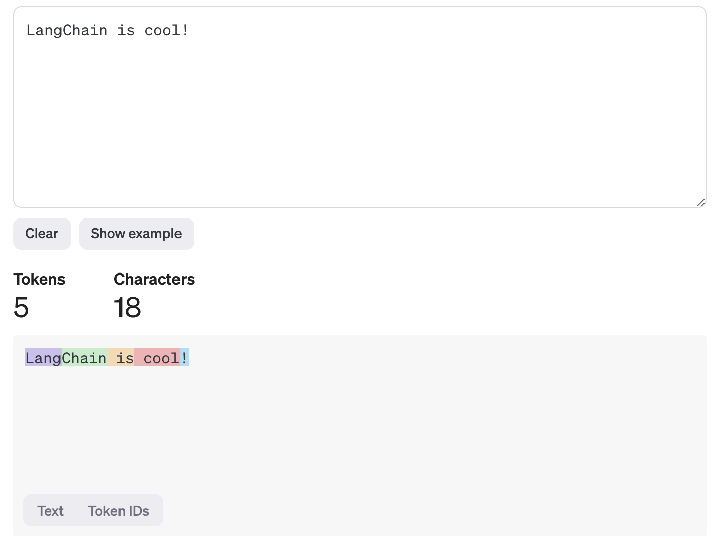 The below example shows how OpenAI models tokenize LangChain is cool!: